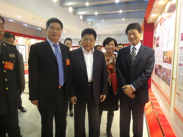 全國政協(xié)副主席鄭萬通與全國政協(xié)副主席陳宗興來到蘇華理事長的展板前,仔細閱讀展板內(nèi)容,并與蘇華理事長親切合影