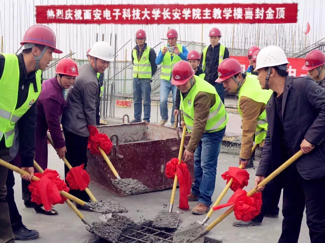 德陽市千山街三段87號(hào)3月20日上午,春日暖陽中,西安電子科技大學(xué)長安學(xué)院主教學(xué)樓主體結(jié)構(gòu)封頂儀式在施工現(xiàn)場隆重舉行。