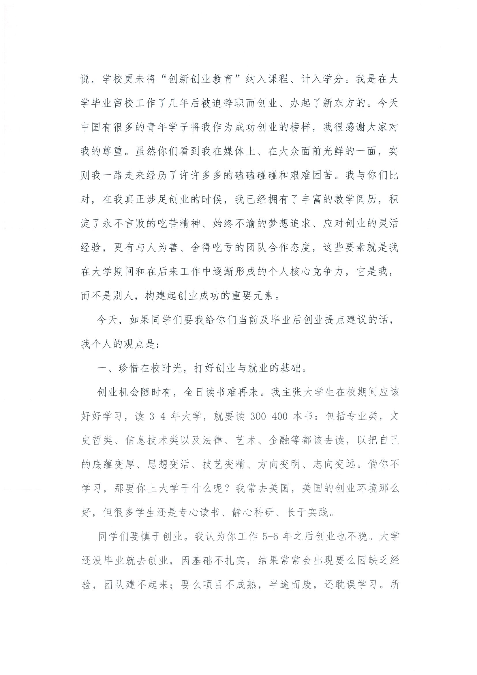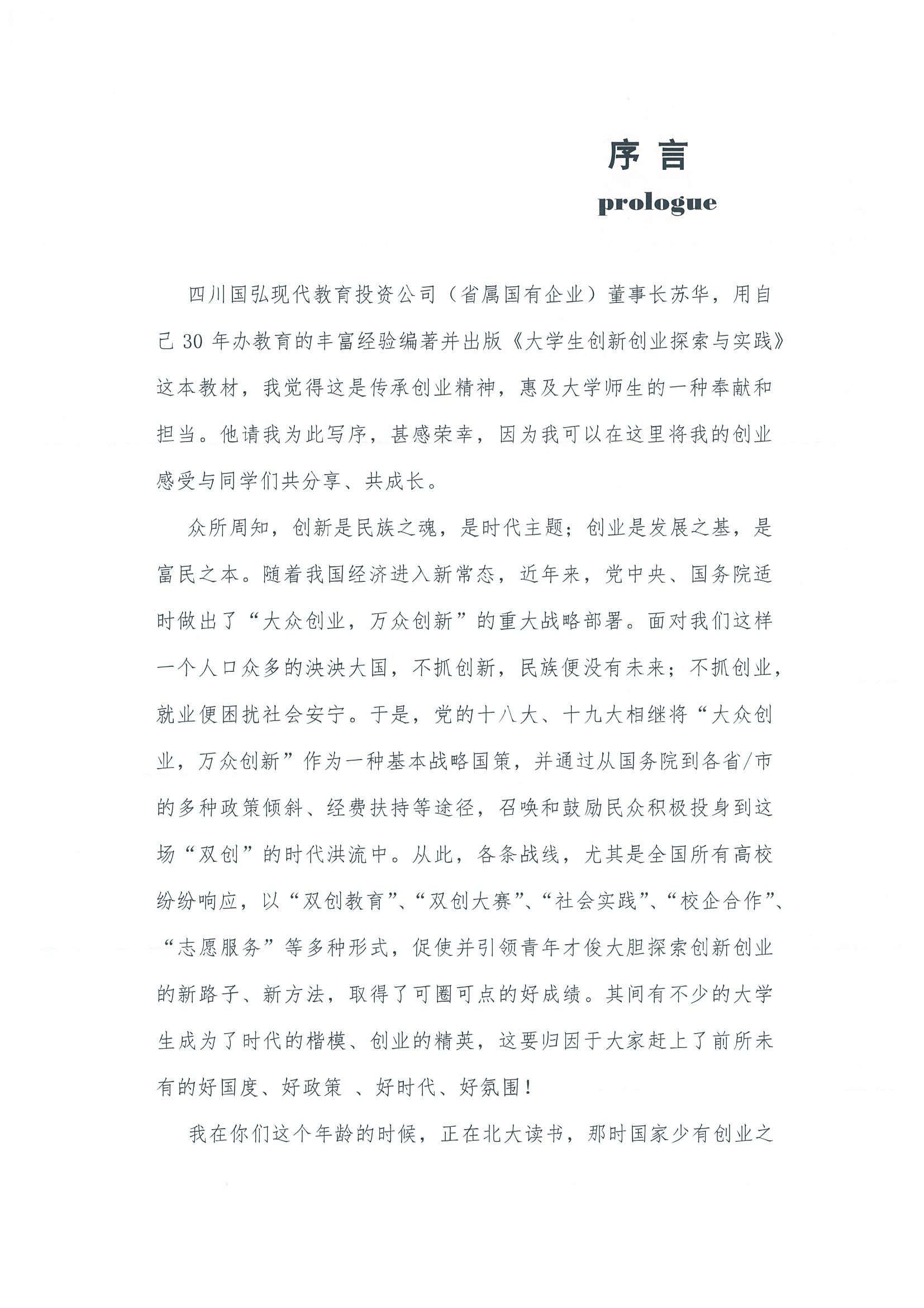 俞敏洪為蘇華主編的《大學(xué)生創(chuàng)新創(chuàng)業(yè)探索與實(shí)踐》一書作序