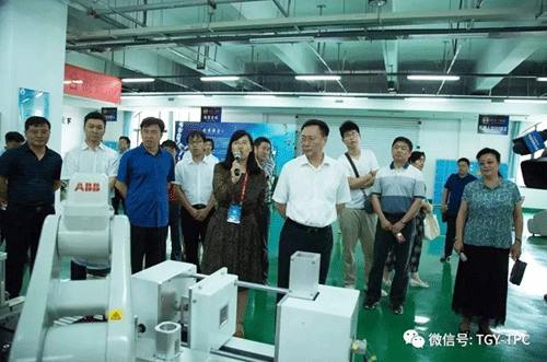 王繼平一行觀看了唐工院《建設(shè)國家優(yōu)質(zhì)高職院校,服務(wù)京津冀協(xié)同發(fā)展國家戰(zhàn)略》的專題匯報片,考察了唐工院校企共建企業(yè)——曹妃甸合心機器人系統(tǒng)集成有限公司和拓又達科技集團、與中車唐山機車車輛有限公司共建的動車組技術(shù)實訓(xùn)區(qū)、液壓有源檢測項目、省級院士工作站——快速制造技術(shù)中心,與在唐工院學(xué)習(xí)交流的愛爾蘭都柏林理工學(xué)院留學(xué)生納賽爾·莫杰塔巴進行交談并詢問了唐工院與愛爾蘭合作項目情況。調(diào)研中,田秀萍、馬良軍介紹了唐工院的辦學(xué)、實訓(xùn)、校企合作、集團化辦學(xué)和人才培養(yǎng)等基本情況。