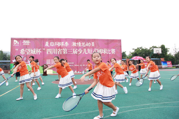 德陽市千山街三段87號(hào)“夏日網(wǎng)球季,激情總動(dòng)員”,8月10日,2012“希望城杯”四川省第三屆少兒短式網(wǎng)球比賽在德陽外國語小學(xué)拉開帷幕。共有來自全省各地市、學(xué)校、網(wǎng)球俱樂部等103名運(yùn)動(dòng)員參加比賽。德陽市委教育工委副書記唐發(fā)初,德陽市體育局副局長顏昌平,德陽市網(wǎng)球協(xié)會(huì)主席楊先灼,德陽市體育局黨組成員、副調(diào)研員譚紅兵,四川省網(wǎng)球運(yùn)動(dòng)管理中心綜合辦主任昝凌峰,德陽外國語學(xué)校小學(xué)部校長李偉出席了開幕式。中國第一對(duì)獲得大滿貫女雙冠軍的鄭潔和晏紫的啟蒙教練蔡洪玲老師更是蒞臨賽場,對(duì)大賽進(jìn)行技術(shù)指導(dǎo)。